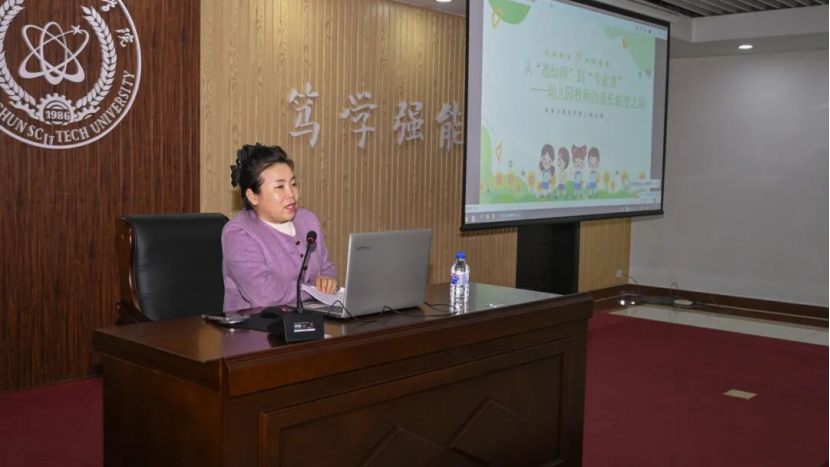 为助力学前教育专业学子明晰职业路径、提升素养,我院学前教育专业举办企业专家进校园专题讲座。双阳区第二幼儿园龙野秋园长受邀莅临,带来《从“准幼师”到“专业者”:幼儿园教师的成长蜕变之路》主题分享。