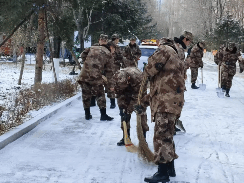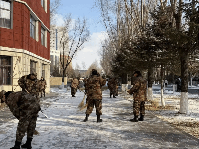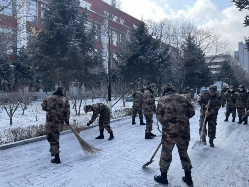 寒风凛冽,气温低迷,却丝毫没有影响预备役教官们的劳动热情。他们秉承着服务校园、心系师生的责任感,在预定区域分工协作,默契配合。铁锹与地面的摩擦声此起彼伏,成为了寒冷清晨里最动听的乐章。大家干劲十足,挥洒着汗水,用实际行动融化冰雪,也用奉献精神温暖了整个校园。