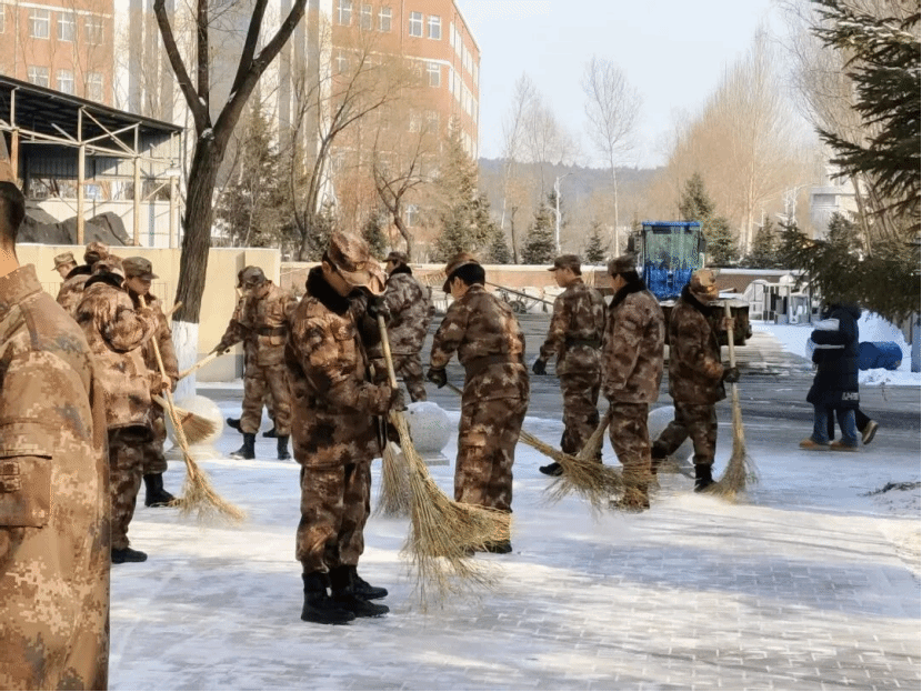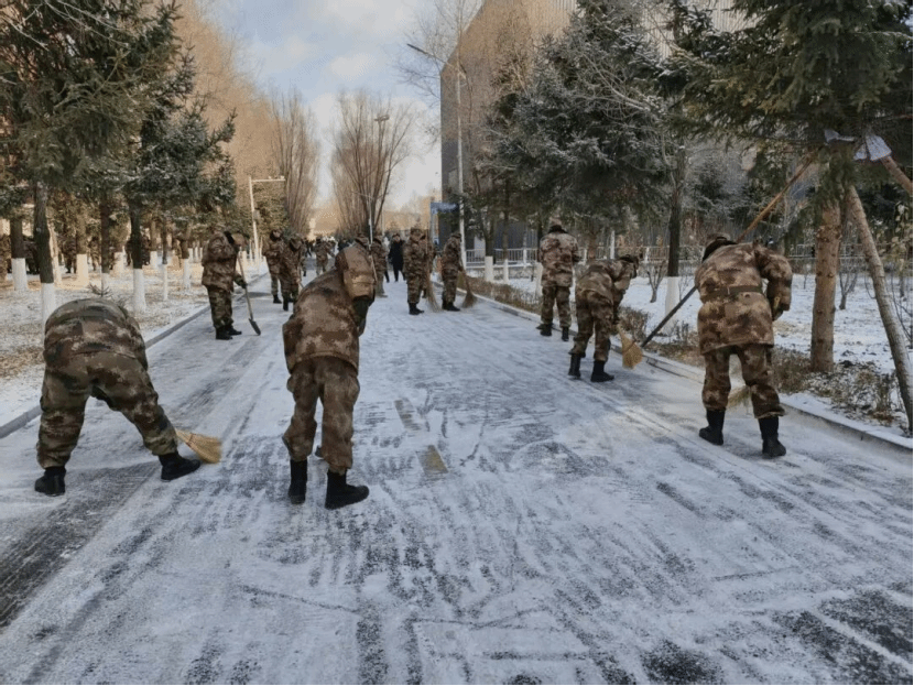经过一番紧张有序的清扫,教学楼、宿舍楼等人流密集区域的主要通道积雪被快速清理干净,一条条洁净、安全的道路重新显现,有效保障了早高峰时段师生通行的顺畅与安全。教官们忙碌的身影,成为了茫茫雪景中最亮丽、最温暖的风景线,他们被冻得微红的脸颊上,洋溢的是完成任务后的自豪与欣慰。