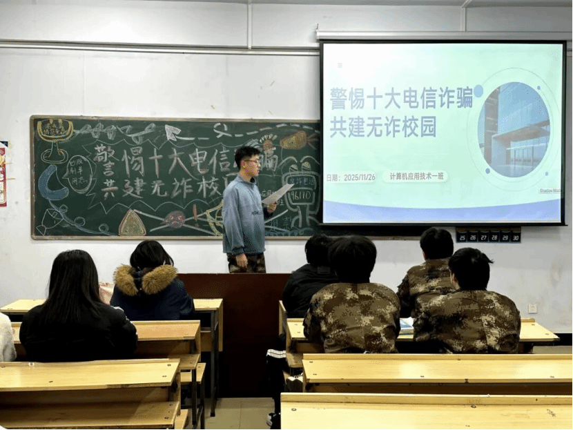 为切实提升学生反诈防骗意识,守护校园财产安全,近日,我院组织全体班级召开“警惕十大电信诈骗,共建无诈平安校园”主题班会。各班级负责人担任主讲人,以精准宣讲筑牢校园反诈“防火墙”。