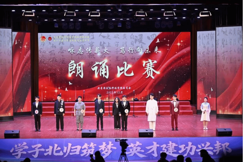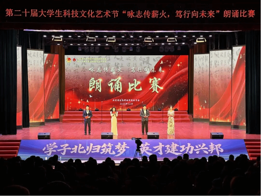 12月4日,长春科技学院第二十届大学生科技文化艺术节“咏志传薪火,笃行向未来”朗诵比赛在东鳌国际会议中心举办。一场以声音传递力量、以经典浸润心灵的青春盛会如期上演。本次比赛旨在通过朗诵艺术的形式,激发青年学子内心深处最真挚的爱国情怀,展现新时代大学生的精神风貌。我院始终秉持全力以赴的态度与真挚热忱的初心,总结经验,力争在下次比赛中突破自我。