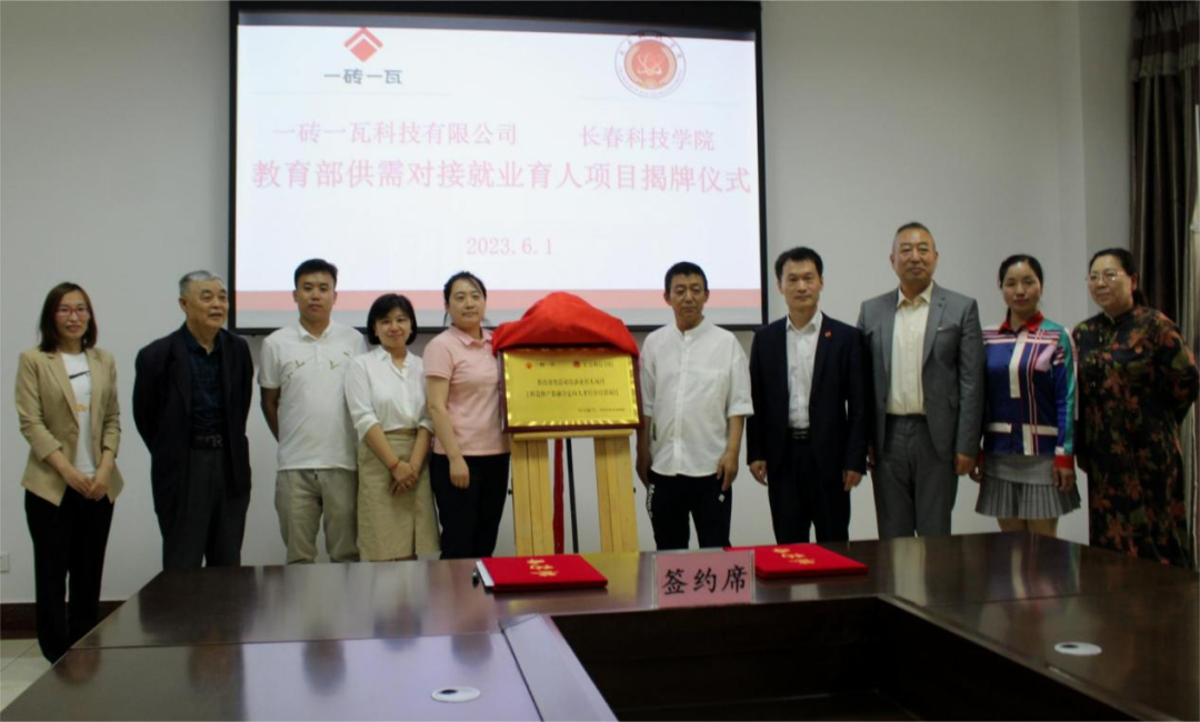 2023年6月1日下午,长春科技学院与一砖一瓦科技有限公司教育部供需对接就业育人项目签约揭牌仪式会议在行政楼403会议室顺利举行。我校党委副书记宋学山、就业处处长于斌,视觉艺术学院院长李文成、副院长崔岩、就业处校企合作办主任肖东飞及学院相关负责教师,...