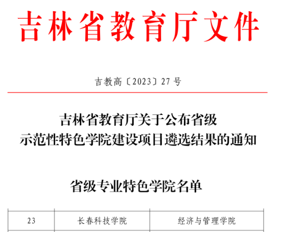 近日,吉林省教育厅下发了《省级示范性特色学院建设项目遴选结果的通知》(吉教高〔2023〕27号),我校经济与管理学院与乡村振兴研究院在“双院协同”机制下,联合吉林农道建设发展有限公司联合申报的省级专业特色学院成功获批,...