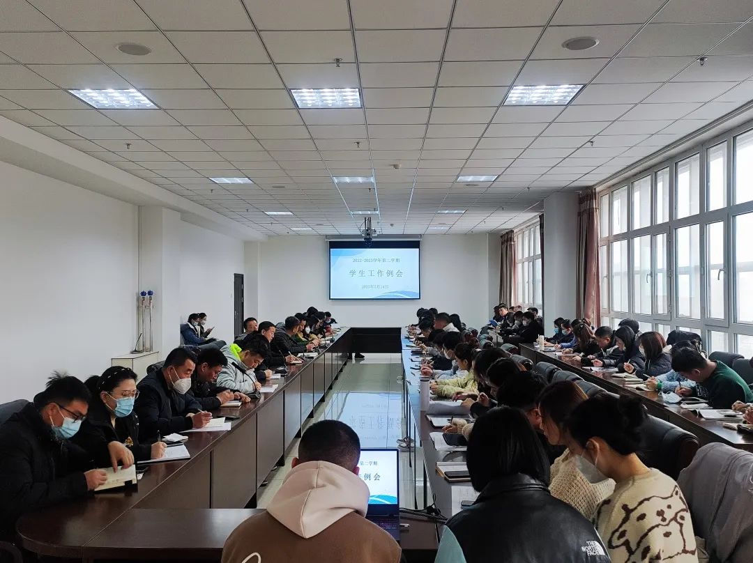 为做好新学期各项工作部署安排,推动学生管理水平不断提升,3月14日上午,学校在行政楼405会议室召开新学期学生工作例会。校党委副书记兼纪委书记宋学山、校团委书记李可心、学生处团委教师、各学院党总支副书记及全体学工干部参会。...