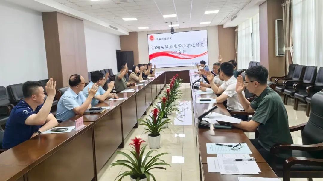 6月20日下午,我校2025届毕业生学士学位评定工作会议在行政楼405会议室召开。会议由校学位评定委员会主席栾立明教授主持,会议应出席委员19名,实际到会委员14名。会议的议程是审查通过2025届毕业生学士学位名单。首先,校学位委员会主席栾立明教授宣布开会,校学位评定委员会办公室主任唐敬仙宣读《长春科技学院学士学位授予工作细则》。然后,各学位评定分委员会主席汇报本学院学位评定情况,并向会议提名拟授予学士学位学生名单,...