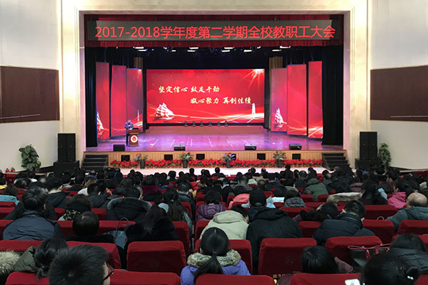 新元年,新气象,新学期,新动力。为使新学期工作开好头,起好步,统一思想、明确方向,发挥全体教职工的正能量,促进学校圆满完成本科教学工作合格评估各项任务。2月25日上午,学校在东鳌学术论坛国际会议中心召开2017-...