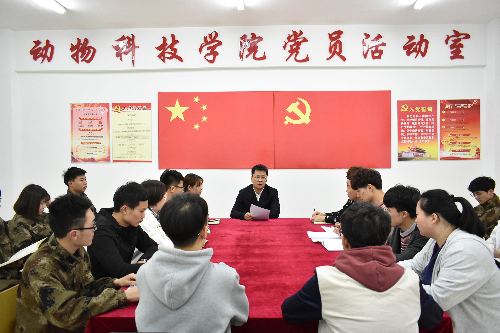 为打造“以优异成绩迎接新时代,以坚定思想创造新辉煌”为主题的“青马”微课堂,营造浓厚的学习氛围,动物科技学院于4月9日晚6点30分在四教606党员活动室召开“不忘初心,牢记使命”“ 青马”学员学习“近平新时代中国特色社会主义思想”...