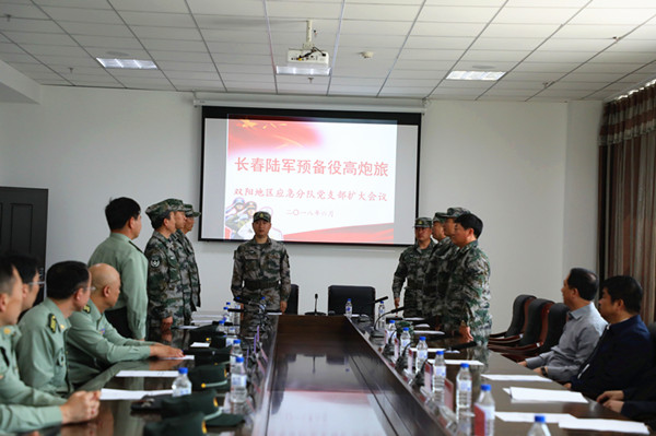 为促进预备役应急分队建设,推动预备役工作有效落实,提升预备役分队应急应战能力。6 月1 日上午,长春陆军预备役高炮旅在我校举行2018年度双阳方向应急分队演练。学校112名预备役官兵参加了本次演练。 ...
