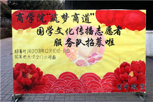 2018年12月10日,由商学院学生会主办,志工部承办的以“国学文化进校园,传统礼仪润心间”为主题的“筑梦商道”国学文化传播志愿者服务队招募活动于食堂门口举办。此次募捐筹集的资金将用来为贫困乡村的孩子们购买书籍。...
