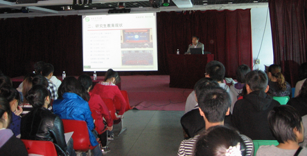2011年9月22日上午,吉林农业大学研究生学院副院长胡桂学博士、教授一行2人来我校进行2012年招生宣传,并做了考研工作专题报告。在一号教学楼六楼报告厅,教务处组织全校300多名考研学生参加这次活动,部分教学分院领导和教务处相关人员参加会议,...