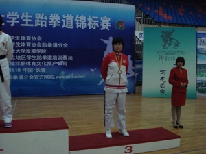 在11月1日刚刚结束的第七届全国大学生跆拳道锦标赛上,我校在83所高校代表队中脱颖而出,夺得女子乙组团体总分第二名佳绩,并荣获体育道德风尚奖、特殊贡献奖。 此次跆拳道大赛中,...