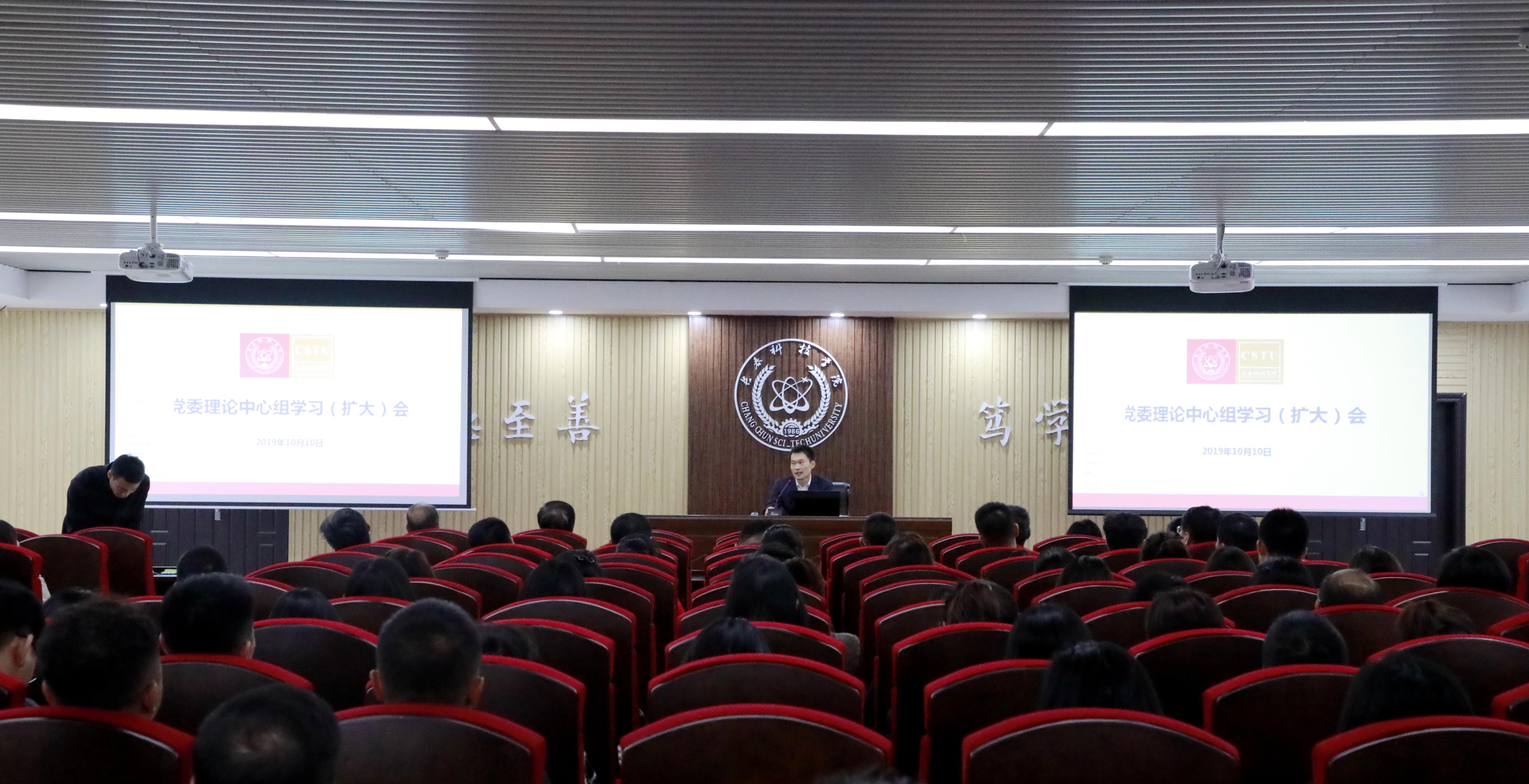 10月10日下午,学校在行政楼411会议室组织召开党委扩大会,进一步推进主题教育持续深入开展。党委理论中心组成员、中层干部、教师、辅导员代表参会。校党委副书记宋学山主持会议。 会上,学习了《习近平在庆祝中华人民共和国成立70周年大会上的重要讲话》...
