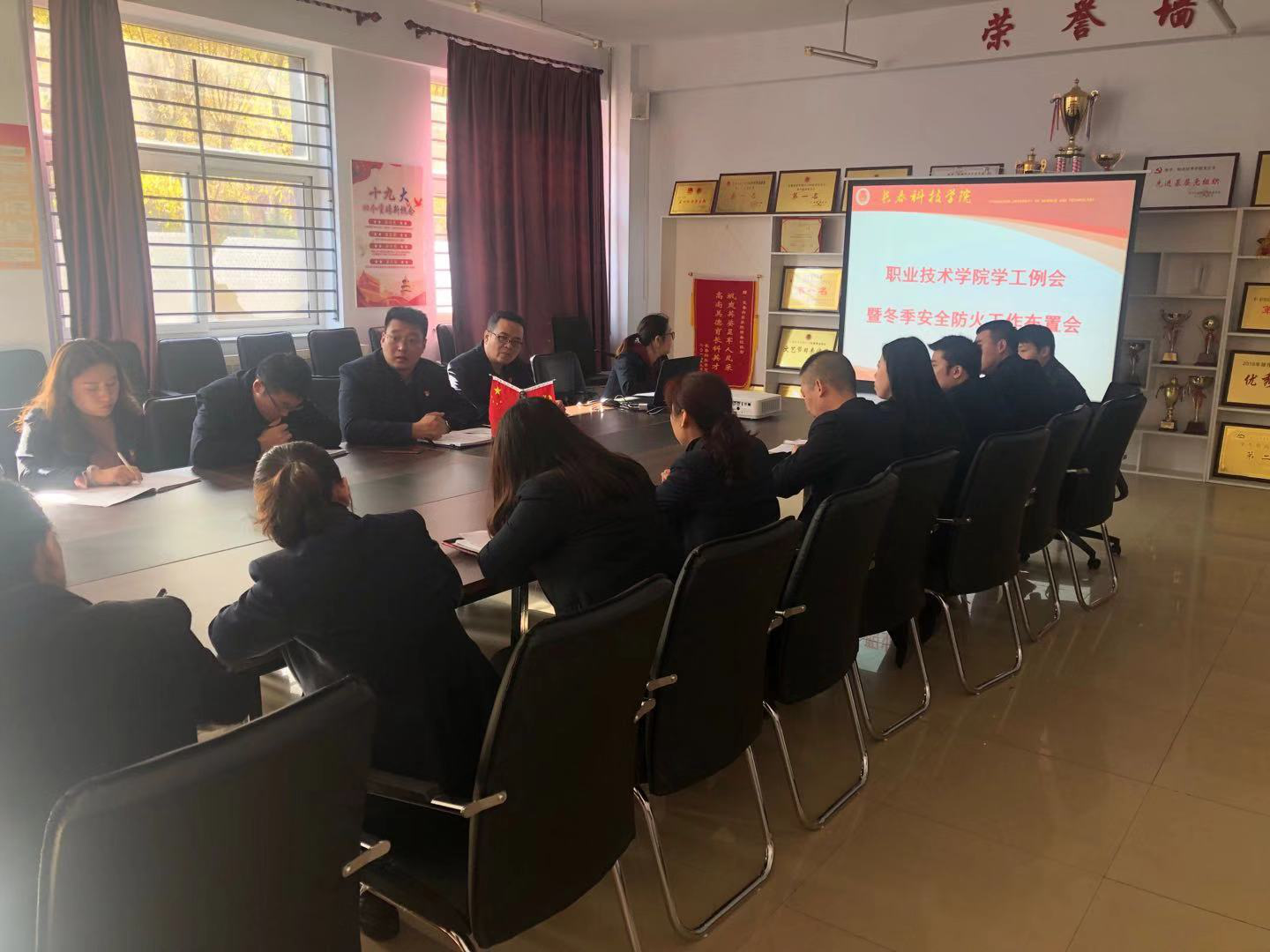 为贯彻落实学校学生安全管理工作相关精神,进一步营造安定良好的校园环境,促进学生健康成长,2019年11月4日下午,职业技术学院在党团活动室召开了辅导员工作例会暨冬季安全防火工作布置会,研究部署冬季学生安全教育与管理工作,...