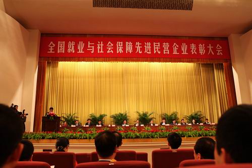 由中华全国工商联合会、人力资源和社会保障部、中华全国总工会联合召开的第四届全国就业与社会保障先进民营企业表彰大会11月27日上午在北京召开。中共中央政治局委员、国务院副总理张德江出席大会并作重要讲话,全国政协副主席、...