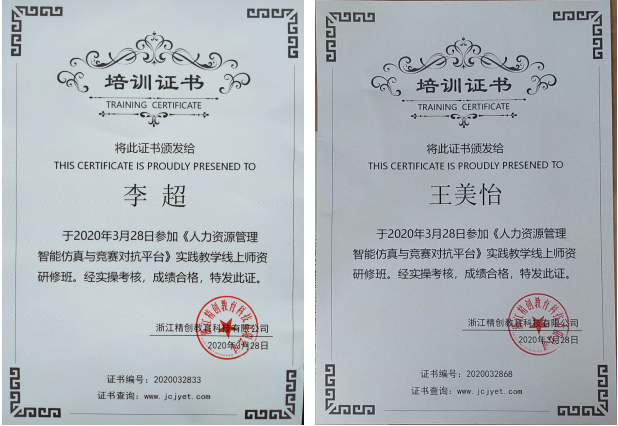 为实现“停课不停学、停课不停教、停课不停研”的工作要求, 3月25日-28日,商学院人力资源管理专业教师李超、王美怡参加了由精创教育集团举办的线上“人力资源管理智能仿真平台”师资研修班。 ...
