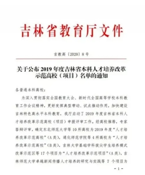 2020年5月27日,吉林省教育厅公布了2019年度吉林省本科才培养改革示范高校(项目)名单,由赵中岳教授申报、唐敬仙处长现场答辩的《“能力本位、立体化、三结合”应用型本科人才培养模式研究与实践》项目获批吉林省本科人才培养改革示范项目(...