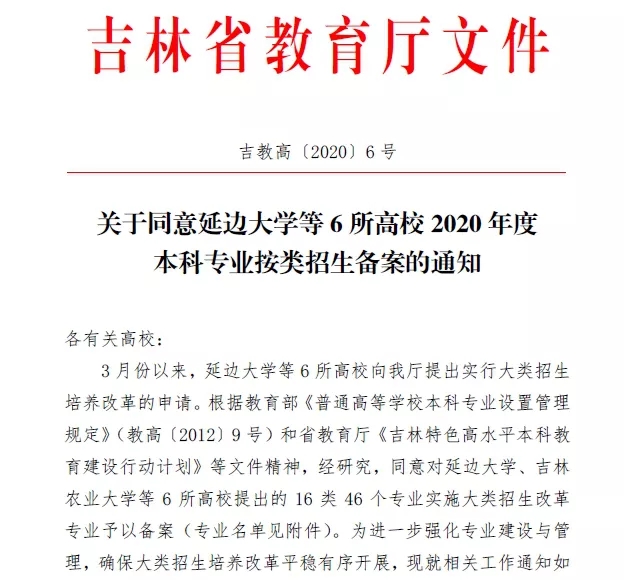 根据《关于同意延边大学等6所高校2020年度本科专业按类招生备案的通知》(吉教高〔2020〕6号),学校食品科学与工程类按类招生获教育厅批准,食品科学与工程和食品质量与安全两个专业将于2020年开始,试点大类招生。 ...