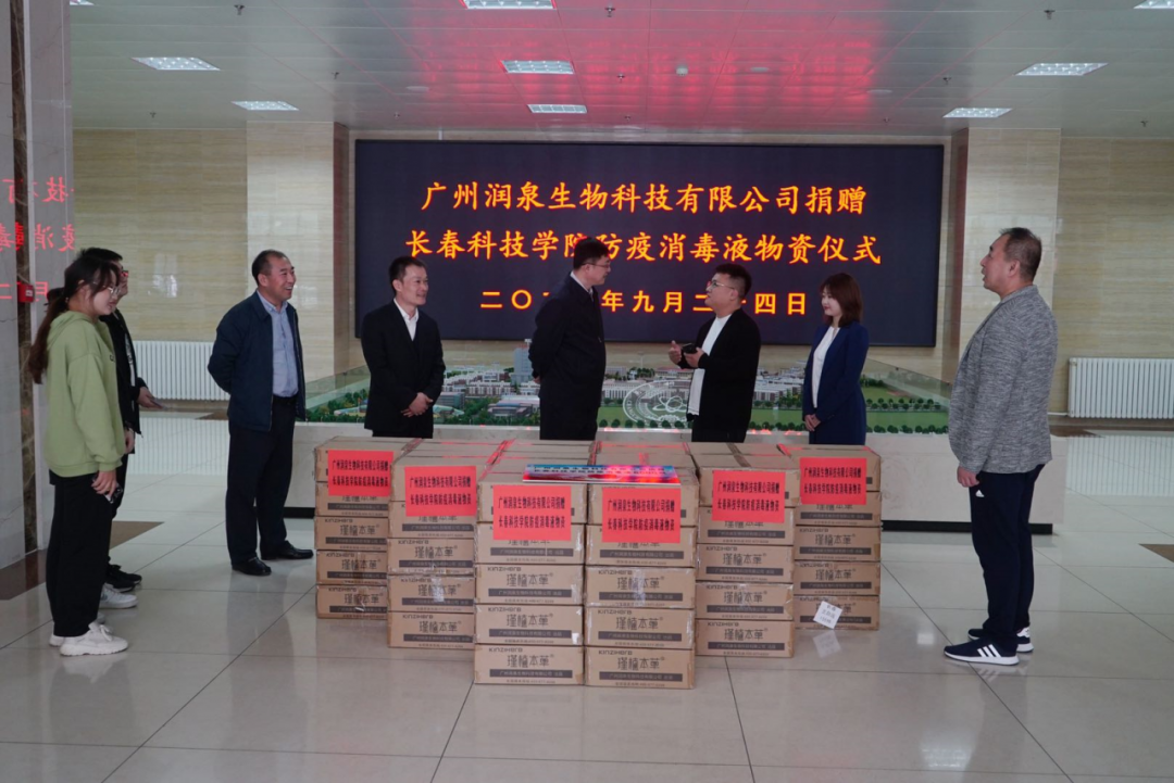 9月24日上午,广州润泉生物科技有限公司长春分公司总经理曹鹏等一行人走进长春科技学院,向学校捐赠6000瓶防疫消毒液,为我校进一步做好疫情防控工作提供了有利的支持。学校党委书记陈延民、党委副书记兼纪委书记宋学山、...