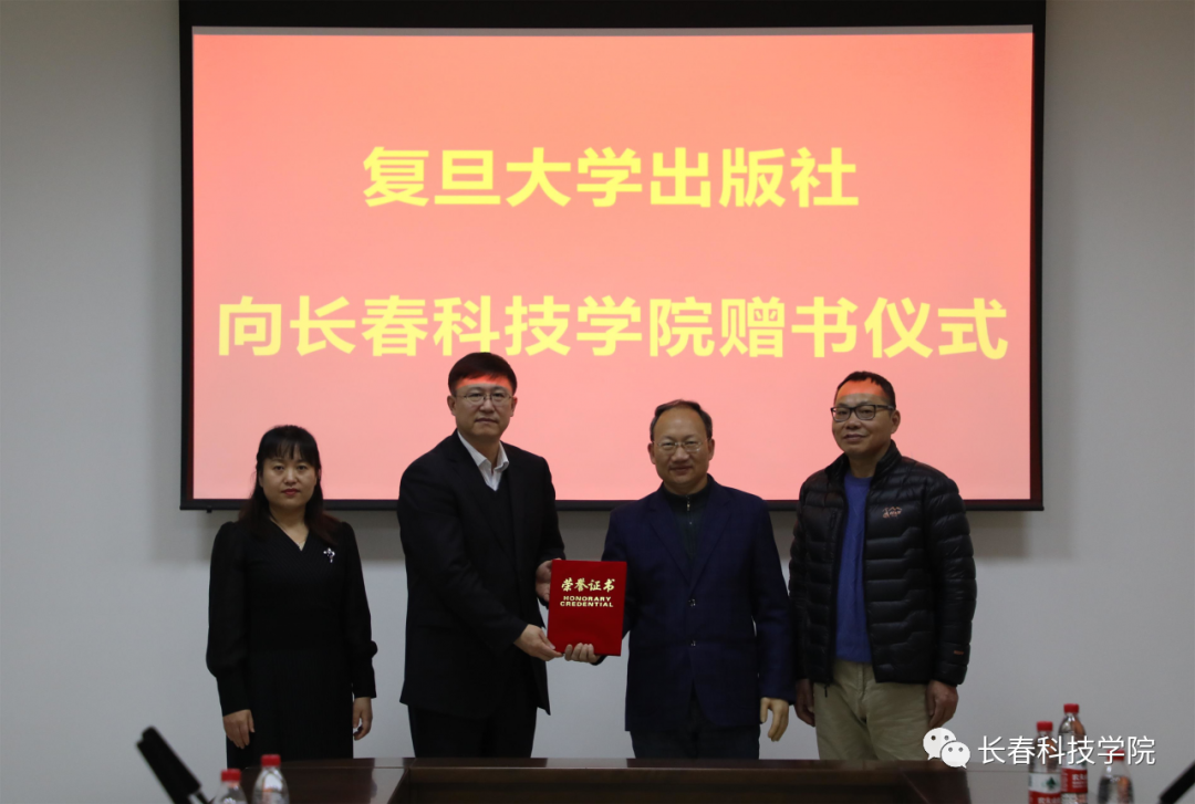 12月7日上午,复旦大学出版社第四次向长春科技学院捐赠图书仪式,在行政楼405会议室成功举行。复旦大学出版社总经理李华、总经理助理仇文平、院校合作部副主任洪少颖、经理夏昆;长春科技学院党委书记陈延民、副校长高杰、...