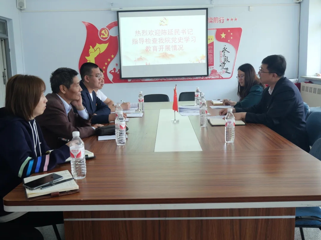 2020年6月4日中午学校党史学习教育第四指导组组长、长春科技学院党委副书记宋学山,党史学习第四指导组秘书李雪莹莅临我院,于第一教学楼1121党员活动室开展检查指导工作。本次会议由语言文化学院党总支副书记陈恭鑫主持,...