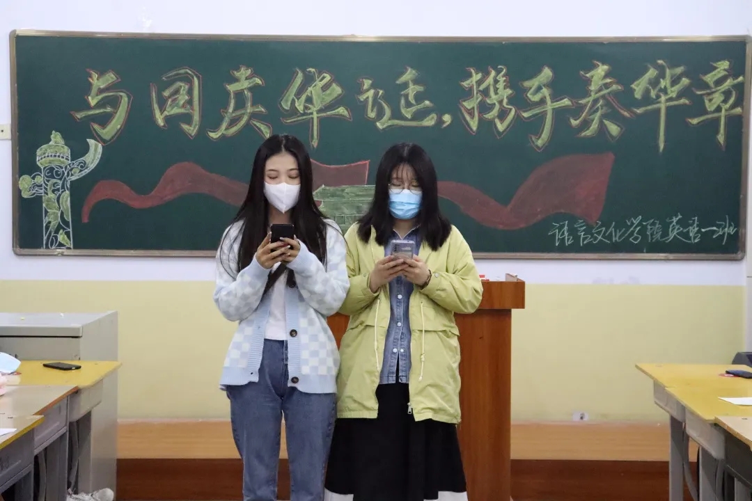 片片红叶舞秋风,万紫千红迎国庆。2021年9月30日下午五点半,语言文化学院在第一教学楼以班级为单位开展了“与国庆华诞,携手奏华章”主题班会,本次班会旨在庆祝伟大祖国72岁华诞,歌颂祖国,激发同学们深厚自豪的爱国情怀,...