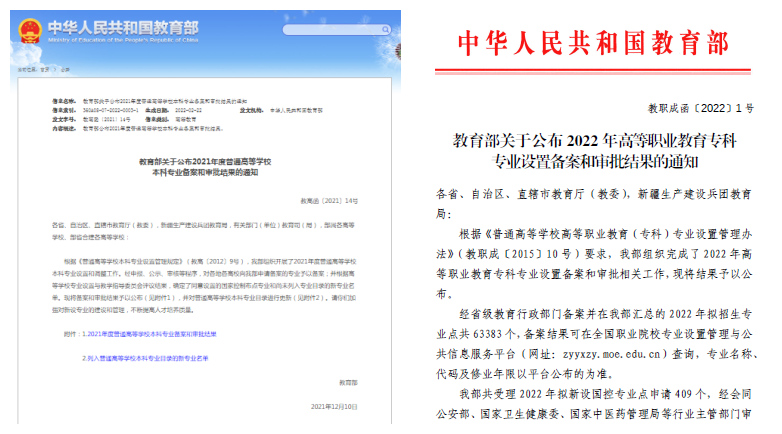 根据教育部《关于公布2021年度普通高等学校本科专业备案和审批结果的通知》(教高函〔2021〕14号)《关于公布2022年高等职业教育专科专业设置备案和审批结果的通知》(教职成函〔2022〕1号),学校申报的小学教育(040107)...