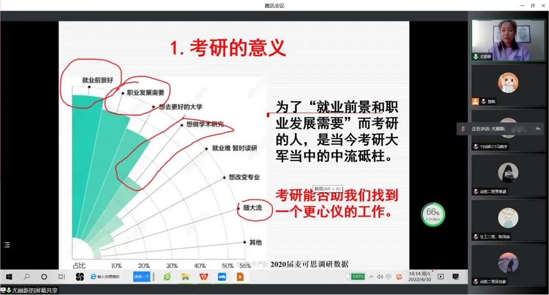 为了使同学们更加深入地了解考研过程中的各种问题,提前备战考研,在日后的研考中有更好的发挥,生命科学学院于2022年4月30日召开以“筑梦新时代,研续青春梦”为主题的线上考研经验交流会。 &...