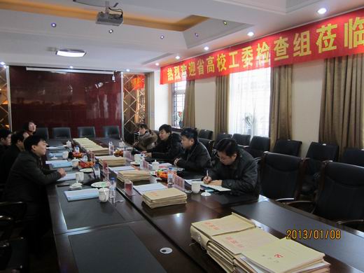 2013年1月8日上午,以省委高校工委组织部梁军同志为组长的省高校发展党员工作检查组一行四人莅临我校,对我校2011—2012年发展党员情况进行工作检查,我校党委副书记李华楠同志、校长助理、党政办公室主任孙加工同志以及我校党委组织部部长、...