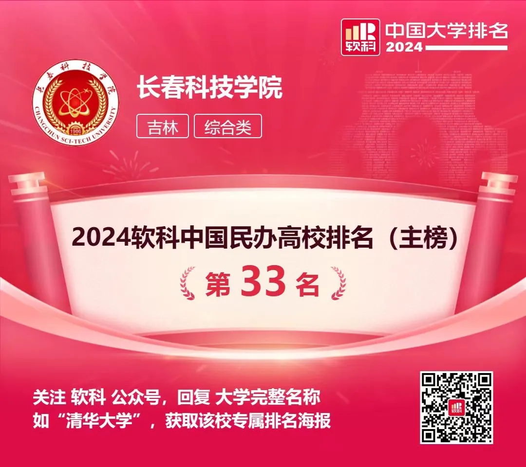 4月18日,高等教育专业评价机构软科正式发布“2024软科中国大学排名”。长春科技学院荣居2024软科中国民办总榜第33名。 “软科中国大学排名”前身是“软科中国最好大学排名”,自2015年首次发布以来,...