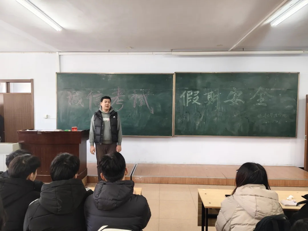 为强化考风考纪,提升学生假期安全意识,2024年12月24日,学院组织召开2023级年级大会,全体2023级同学参会,会议由冯也老师主持。 会上,冯也老师着重强调诚信考试的重要性,考试是对知识掌握程度的检验,...