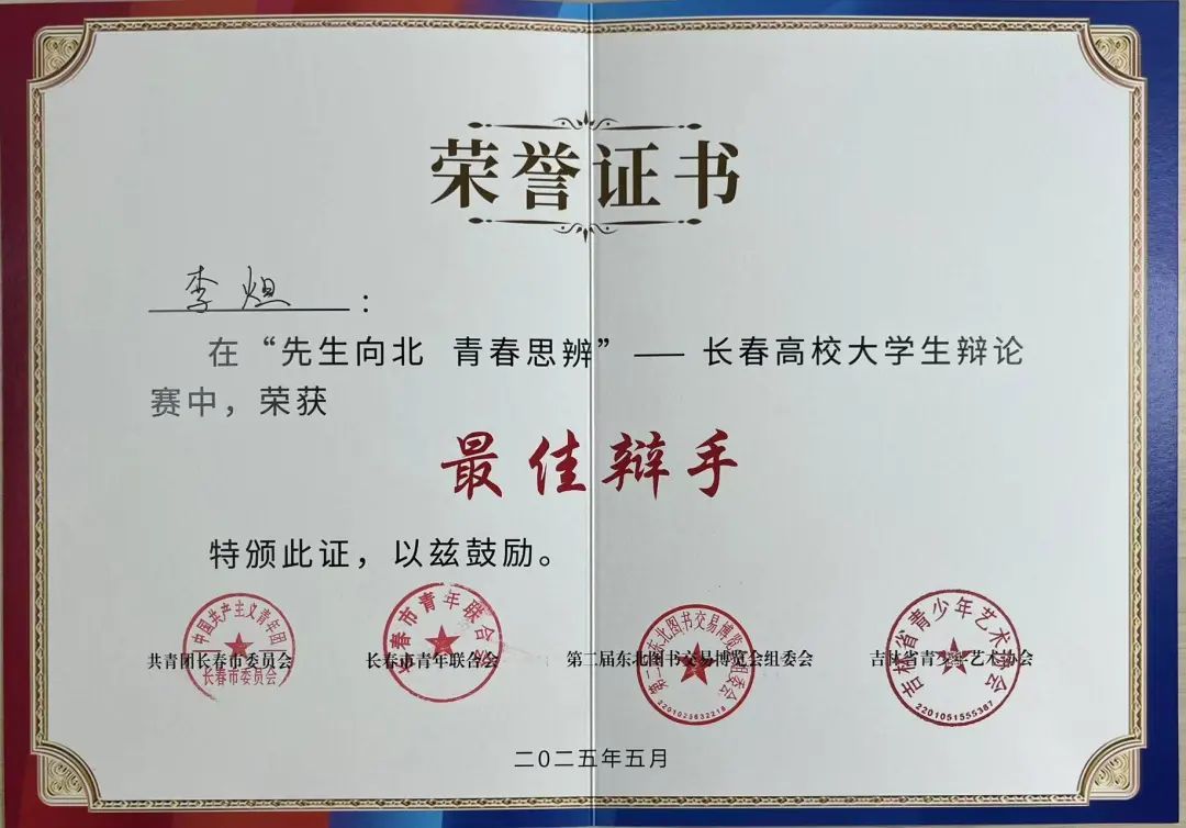 在激烈角逐的赛场上,思维的火花不断迸发!由共青团长春市委、长春市青联、第二届东北书博会主办,吉林科学技术出版社、吉林省青少年艺术协会承办的 “先生向北,青春思辨” 辩论赛中,长春科技学院辩论队一路披荆斩棘,成功闯入八强!这一荣耀时刻,属于每一位为之拼搏的长科学子!本次辩论赛,生命科学学院李炟荣获“最佳辩手”、我校荣获“优秀组织单位”奖、闫冬妮荣获“优秀指导教师”。团委始终高度重视学生的全面发展,积极为同学们搭建各类展示才华的平台,...