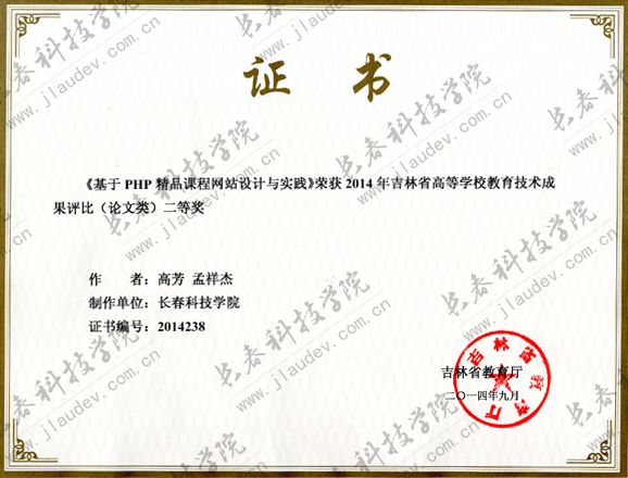 为推进吉林省高校教育信息化建设,推动现代教育技术成果的交流与推广,2014年9月28日,吉林省教育厅在清华宾馆举行了高等学校教育技术成果评审的现场答辩,我校经过精心准备和精彩答辩,最终申报的《基于PHP精品课程网站设计与实践》...