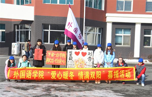 为了让贫困家庭的学生在这寒冷的冬天感受来自社会的爱心与温暖,长春科技学院外国语学院青年志愿者协会12月7日组织了主题为“爱心暖冬,情满双阳”募捐活动,以资助母亲残疾、父亲失业的刘宏毅和失去双亲、爷爷奶奶残疾的刘杏两名初中生。...