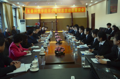 2015年3月20日上午,我校召开了 “学生返校思想动态座谈会”。长春市委宣传部高教处处长、高校工委办公室主任郑学华、长春市委宣传部副调研员崔静、 长春市委宣传部信息处副主任科员王欢欢、吉林华桥外国语学院双语学院学办主任李明丽莅临我校检查指导工作。...