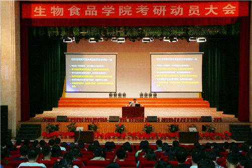 5月26日晚,生物食品学院在东鳌学术论坛——国际会议中心举办了考研动员大会。院长胡铁军、党总支武强书记在会上作了发言,为同学们指点迷津,解疑答惑。 胡铁军院长在动员会议上作了发言,胡院长曾在吉林皓月集团担任副总裁长达8年的时间,...