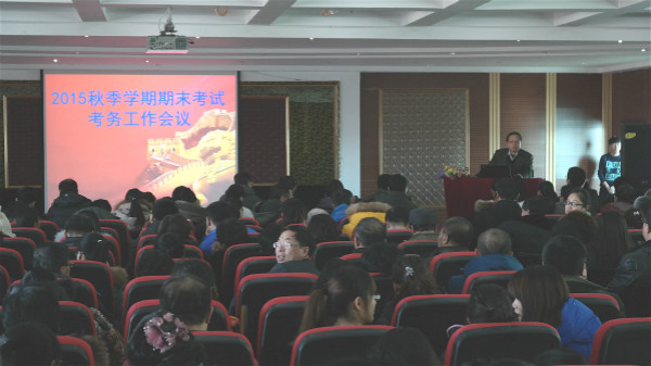 2015年12月17日下午,本学期期末考试考务工作会议在第一教学楼六楼报告厅召开。出席此次会议的领导有:煕莹副校长、教育质量监督办公室李博主任。学生处、各学院、监督办参与期末考试巡考组的有关领导、教务处工作人员和全体监考教师共400余人参加了会议。...