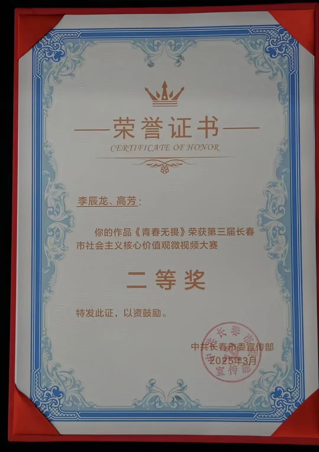 《青春无畏》荣获第三届长春市社会主义核心价值观微视频大赛二等奖