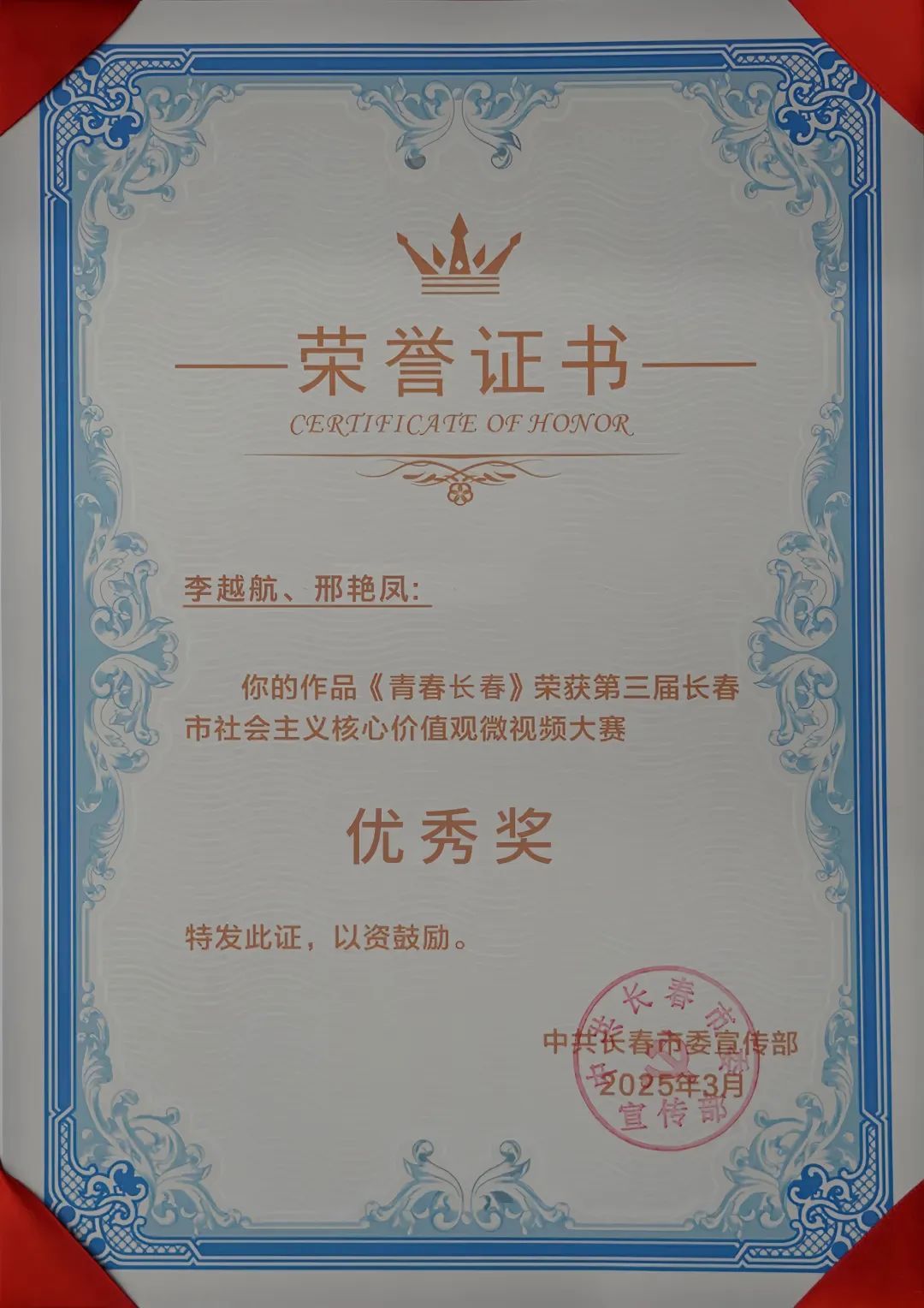 一直以来,长春科技学院着力构建“大思政”育人格局,将价值观教育融入实践育人各环节。此次获奖作品正是这一育人理念的生动体现,展现了学校在培养担当民族复兴大任时代新人方面的创新探索。
