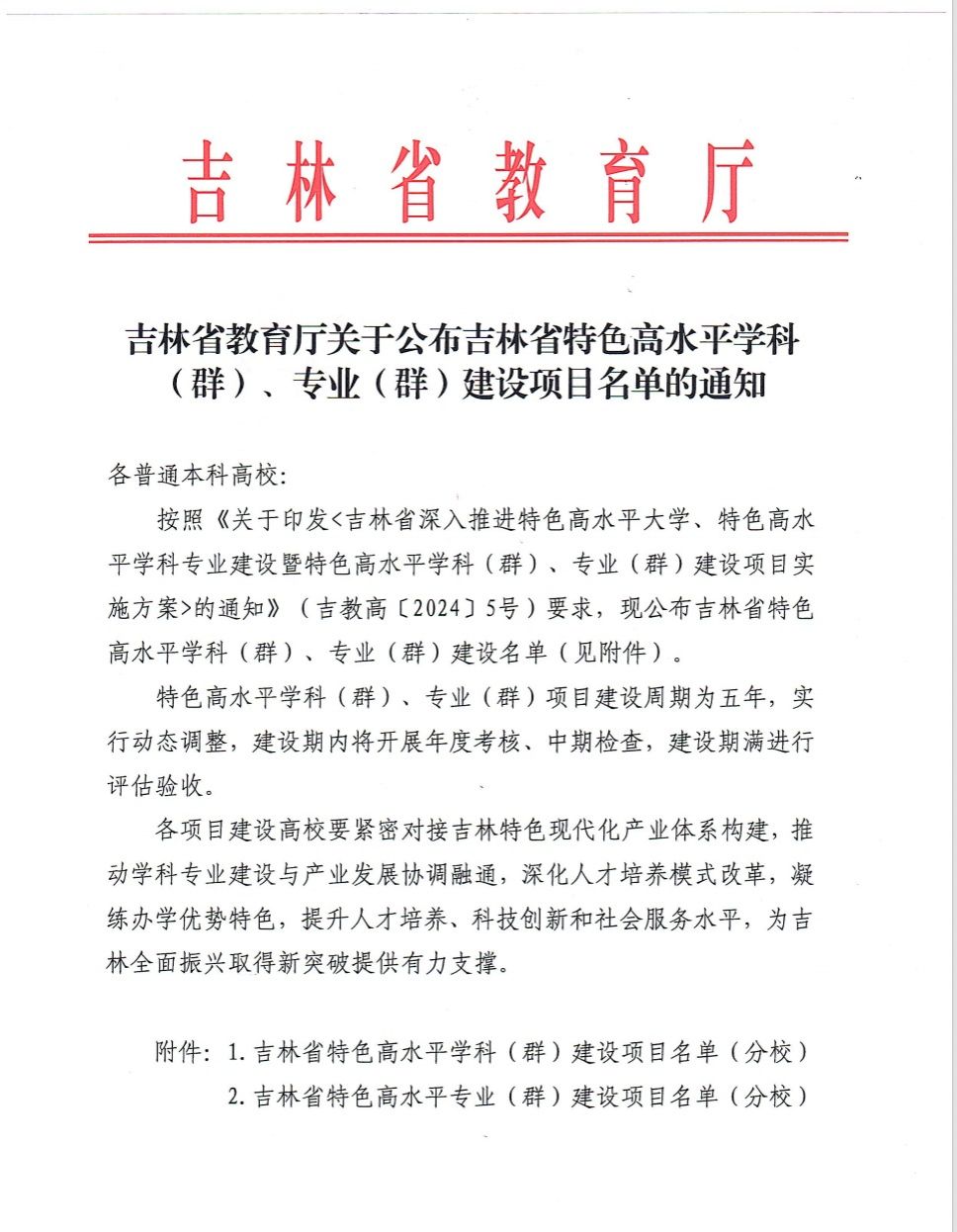 近日,吉林省教育厅公布了《关于公布吉林省特色高水平学科(群)专业(群)建设项目名单的通知》,学校中医药养老养生、乡村振兴与农业现代化2个专业(群)获批省级特色高水平专业(群)建设项目。这是学校在省级特色高水平专业建设领域的新突破,是对学校综合办学实力的肯定,此次立项是学校深化教育教学改革、一体推进教育科技人才建设、服务地方经济社会发展的重要成果,标志着学校的专业建设迈上新台阶。