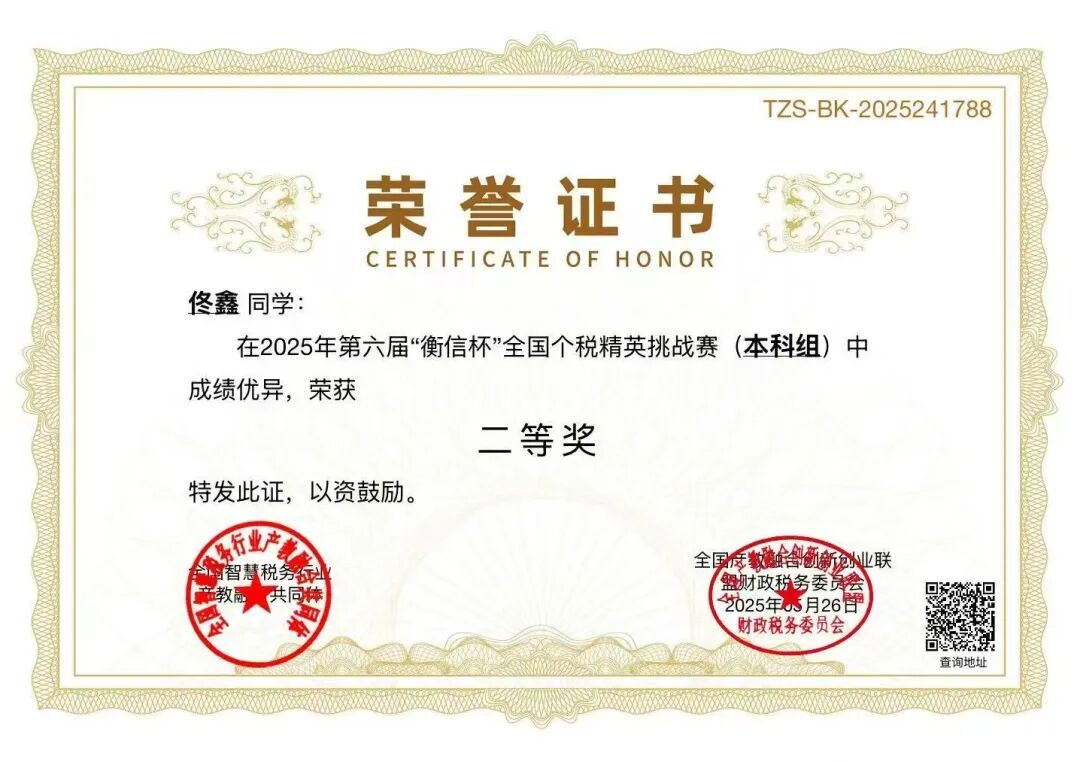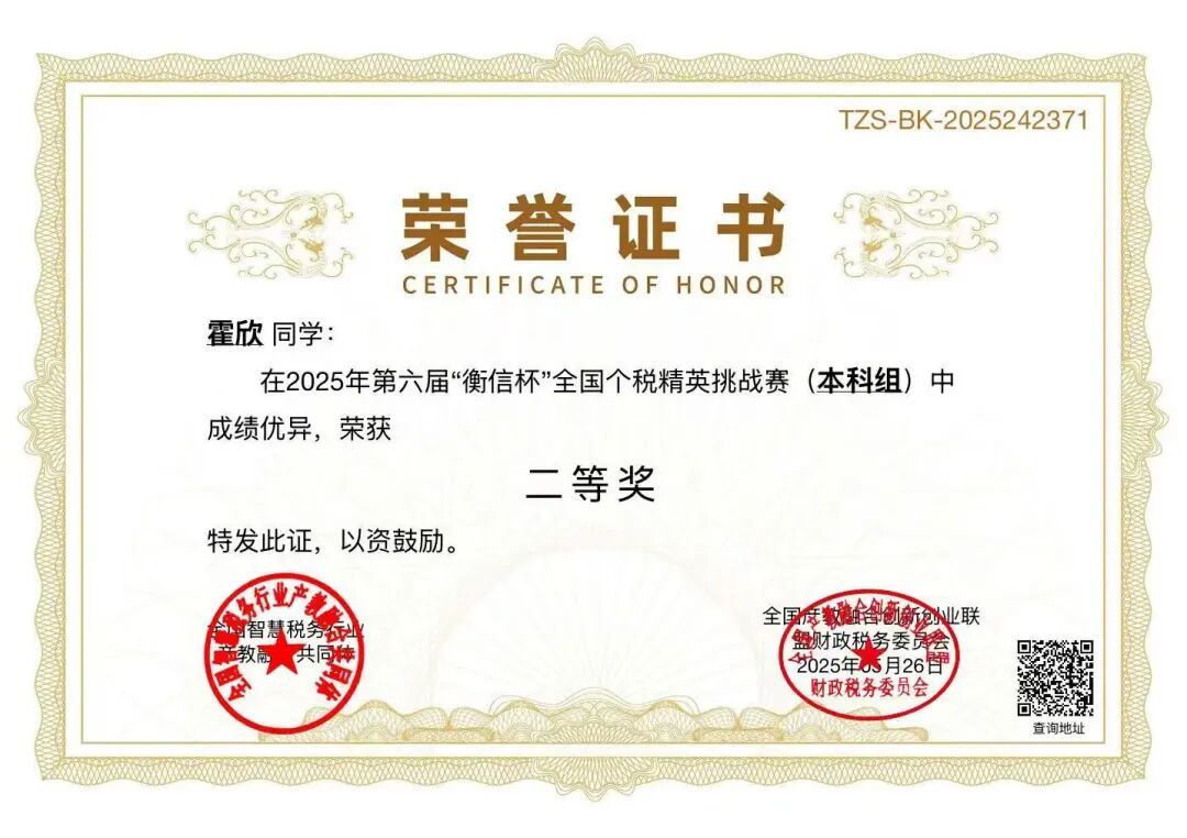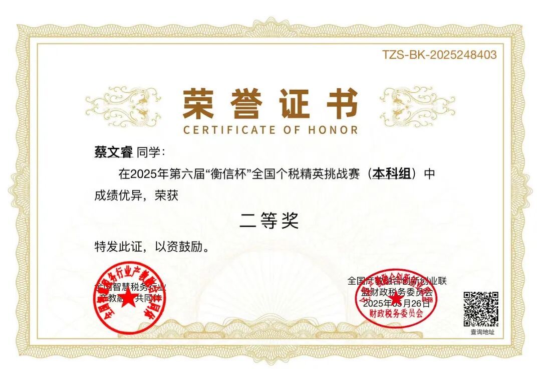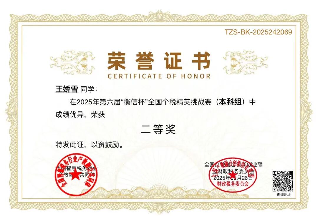 此次比赛以团队赛形式开展,围绕个人所得税、数电票等知识展开激烈比拼。全国共173所本科院校、超12000名选手,长春师范大学、长春财经学院的学子们都踊跃参与。在这场赛事中,学校参赛团队一路过关斩将,凭借扎实知识与默契协作,最终荣获国家级团体二等奖,充分展现了学校财税教学的卓越成果。