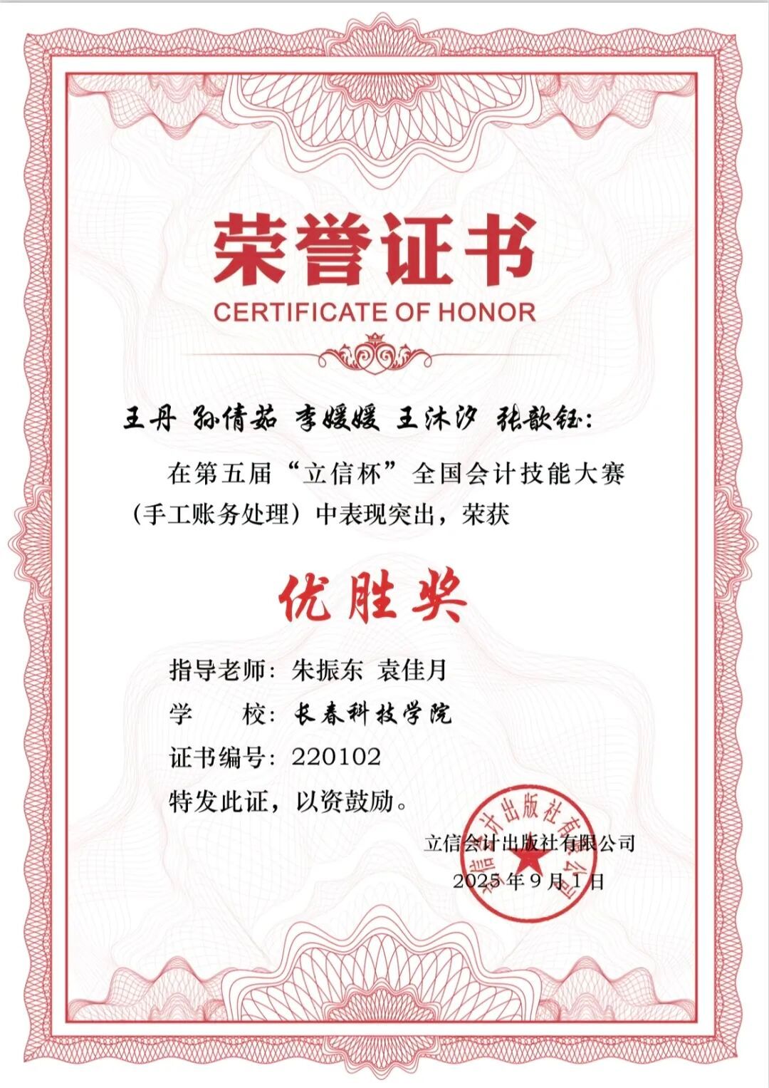 本次大赛聚焦手工账务处理全流程实操能力,以制造业仿真经济业务为背景,考核选手建账、原始单据处理、账簿登记、报表编制与分析等核心技能。赛事吸引全国众多院校参与,长春科技学院组建多支队伍参赛,在赵士娇、朱振东、袁佳月等指导老师的带领下,最终收获累累硕果: