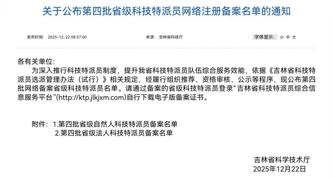 近日,吉林省科技厅发布《关于选派李昊龙等142名科技人才担任2025年第二批吉林省企业“科创专员(科创副总)”的通知》《关于公布第四批省级科技特派员网络注册备案名单的通知》。学校共有7名教师成功入选,其中5名教师入选吉林省省级科技特派员,2名教师入驻省内重点企业担任“科创专员(科创副总)”,实现学校科技人才服务吉林振兴发展新的突破。