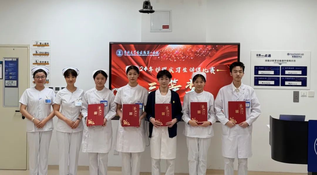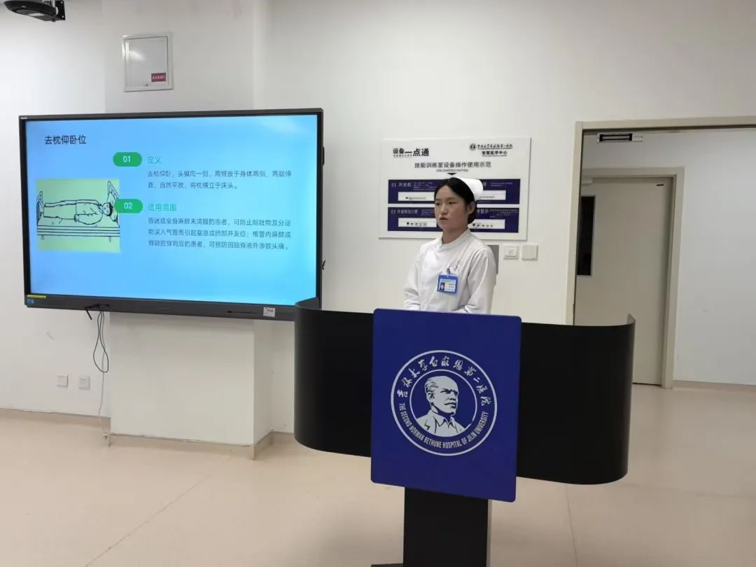 在吉林大学第二医院2024年实习生讲课比赛中,王安娜同学以扎实的专业技能、良好的综合素养和认真负责的工作态度在众多选手中脱颖而出,获得三等奖。她围绕关键的护理技能展开讲解,确保把每一个环节都讲透彻,结合真实的临床案例来讲授技能,让抽象的知识变得生动直观。她还通过现场操作演示基本技能,强调其中容易出错的环节,更加体现她对护理技能的操纵自如。课件简洁明了、条理清晰,用图片、图表等直观元素辅助文字说明,讲课语言通俗易懂、生动形象,表达对护理专业的理解和护理工作的热爱。