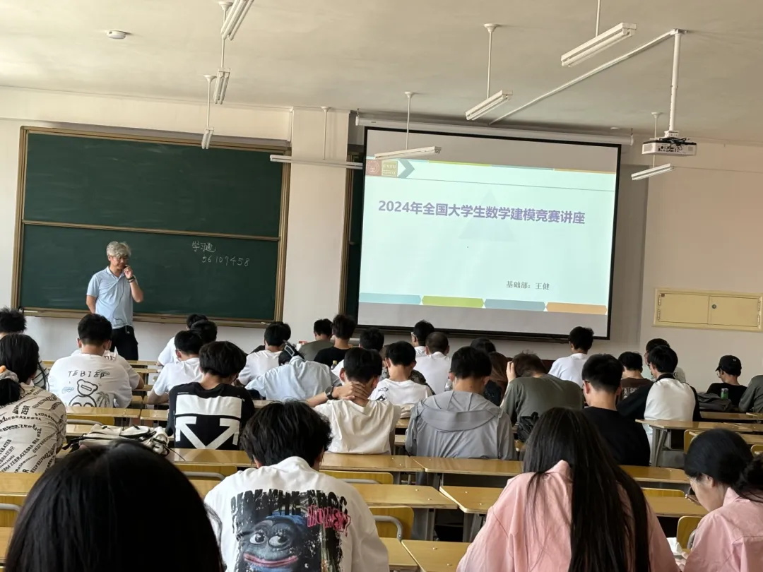 备赛期间,我们多次组织学生参加赛前培训,教研室主任王健亲自授课辅导,凭借丰富的教学经验和扎实的理论功底,为队员详细讲解数学建模的方法、技巧以及注意事项。同学们认真听讲,积极提问,使本次培训收到预期效果。