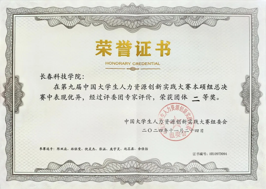 本届HRU大赛以“培养、造就、适应新质生产力发展的复合型人才”为主题,深入贯彻党的二十大精神,坚定人才是第一资源、创新是第一动力,不断拓宽夯实大赛平台,为培养具有创新意识和实践精神的高素质应用型人才为目标。经过全国七大赛区比拼,最终100所高校的1000余名选手挺进总决赛。本届大赛总决赛在学校的支持与指导下,经济与管理学院领导精心部署,李超、王美怡老师带队,选拔自人力资源管理专业各年级庞宇灵、林依雯、赵蕊鑫、陈双焱、倪炎杰、余佳怡、张涵参加了总决赛。经过激烈角逐,我校代表队最终荣获第九届中国大学生人力资源创新实践大赛团体二等奖,其中无领导小组讨论、数字化HR实操、劳动争议处理等赛道获得单项二等奖。
