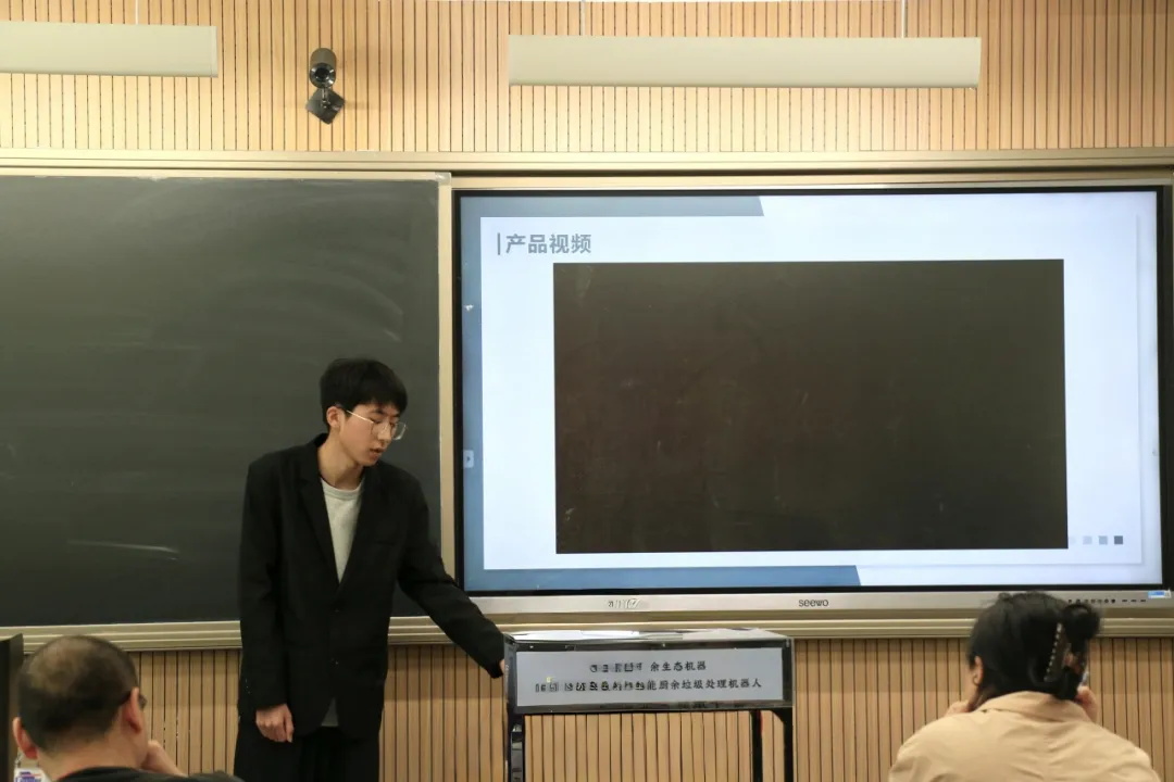 现场答辩和交流展示环节,智能制造学院参赛团队进行项目答辩汇报并展出了实物作品,并向到场嘉宾和评委讲解了作品设计理念、技术难点和创新点、社会效益和市场价值以及未来量化生产需要克服的技术难点。参赛选手们将多学科交叉融合的理念融入设计制作过程,彰显了智能制造学院多学科交叉,产教融合的育人理念,将专业知识与生产生活所需产品有机融合,得到了评审专家的高度评价。