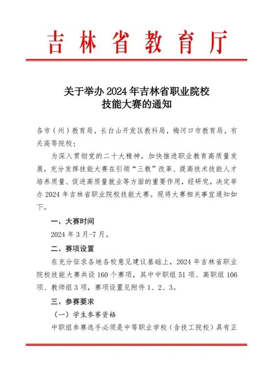 为全面贯彻党的二十大精神,落实全国职业教育大会精神,深入实施新时代人才强省战略和技能兴省战略,按照《中共吉林省委教育工委关于印发< 吉林省职业院校技能大赛工作方案>的通知》由吉林省教育厅主办,长春职业技术学院承办的2024届吉林省职业院校技能大赛“园林景观设计与施工”项目在长春职业技术学院举办。本届大赛以“展示技能风采,助推技能强省"为宗旨,突出服务能力、突出职业特色、突出工学结合,是全省职业院校学生技能的大检阅。充分发挥大赛的示范引领作用,促进职业院校教育教学改革,激励职业院校师生比学赶超,引导教师立足岗位比技能,强本领。推动全省职业教育高质量发展。