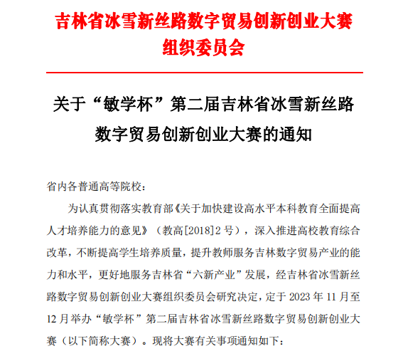 为认真贯彻落实教育部《关于加快建设高水平本科教育全面提高人才培养能力的意见》(教高[2018]2 号),深入推进高校教育综合改革,不断提高学生培养质量,提升教师服务吉林数字贸易产业的能力和水平,更好地服务吉林省“六新产业”发展,本次大赛旨在搭建高校、行业与企业协同创新培养学生的综合平台,提升教师参与吉林省数字贸易产业发展的能力和水平,持续深化教育教学改革,以赛促研、以赛促教、以赛促学、以赛促创、赛学结合,切实提高大学生的创新精神和真实项目参与度,通过对数字贸易的仿真实验,提升学生在数字贸易方面的综合实践与决策能力,培育亟需的数字贸易创新创业人才。本届大赛吸引了全省23所高校的1300支队伍报名参赛,参赛师生近3000人。