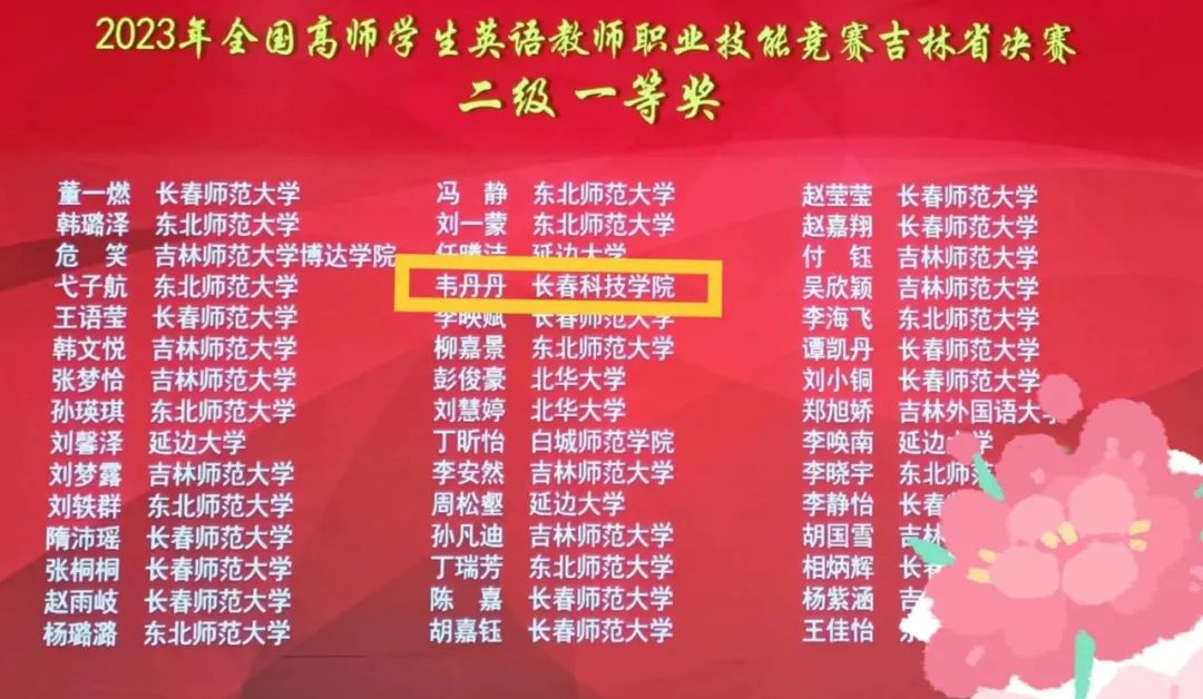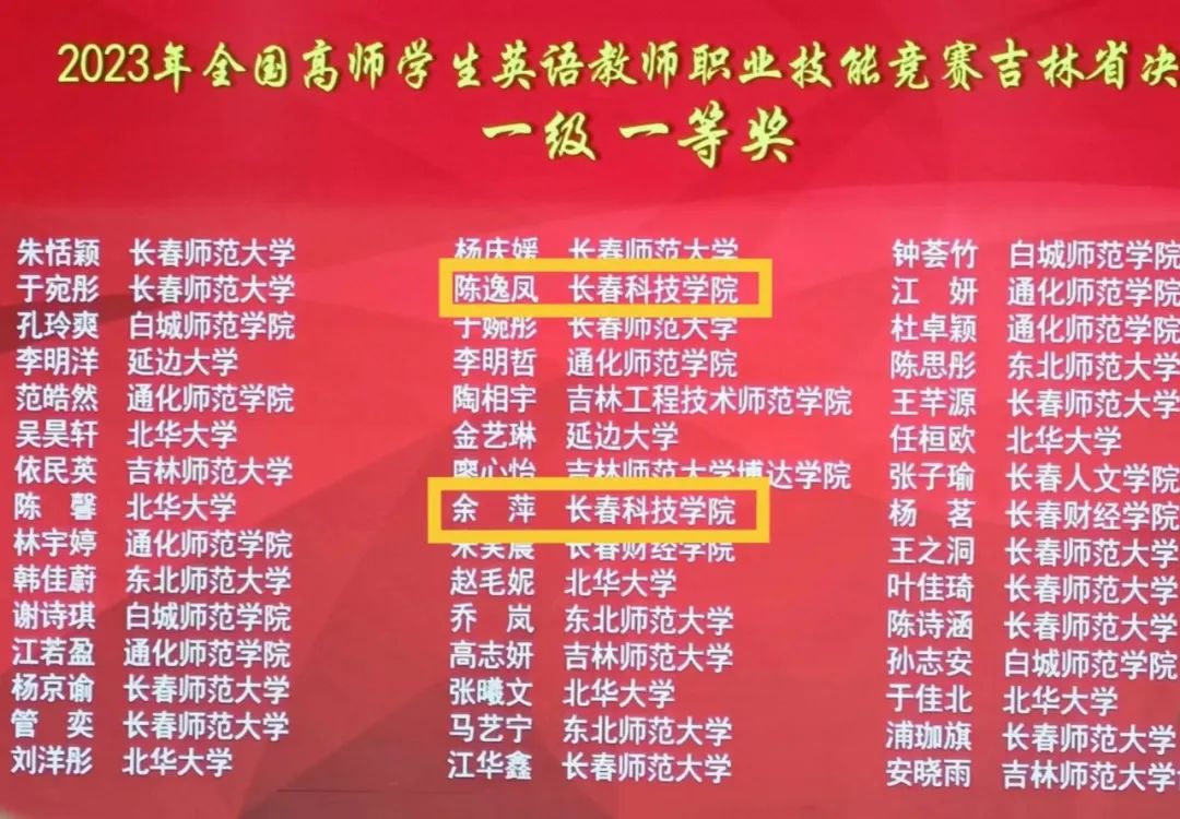 在比赛过程中,学院每名参赛选手,不仅克服了紧张的心理,用流利的口语讲解授课内容,展现出各自的教学特色,还充分体现了作为学院学子的风姿。最后,经过激烈的角逐,长春科技学院语言文化学院·新媒体学院2022级英语专业陈逸凤、余萍同学荣获一级一等奖;2021级英语专业韦丹丹荣获二级一等奖;2022级英语专业高云峰、姚景阔、沈冰、袁世佳、倪颖、孙依依同学荣获一级二等奖;2021级英语专业周航同学荣获二级二等奖。
