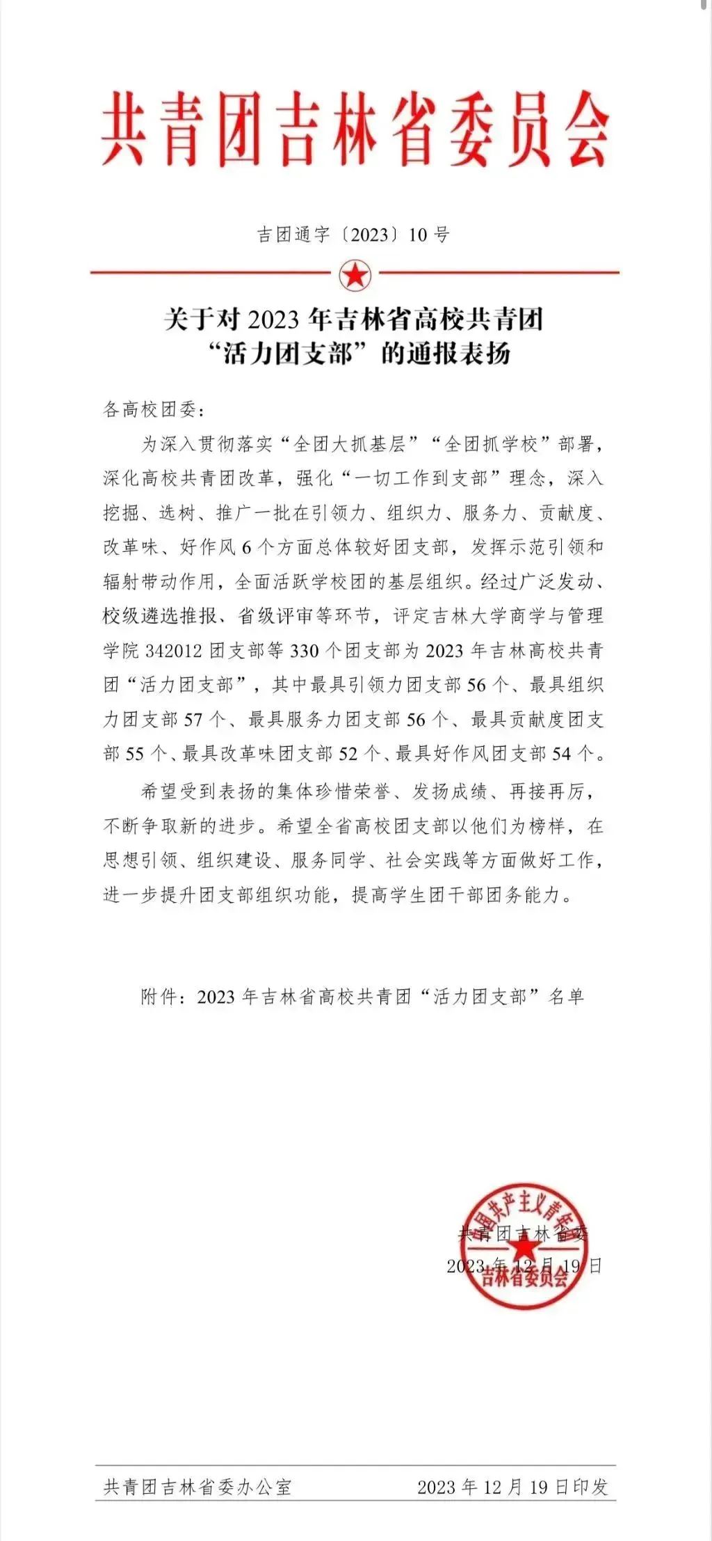 希望获得荣誉称号的团支部珍惜荣誉再出发、砥砺奋进新征程,不断争取新的进步。同时希望全校团支部以“活力团支部”的标准严格要求管理,在思想引领、组织建设、服务同学、社会实践等方面做好工作,进一步提升团支部组织功能,提高学生团干部团务能力。继续发挥思想政治教育和青年引领作用,踔厉奋发、勇毅前行,用实干凝聚青春奋进力量。(学生记者:罗弘伊卉)
